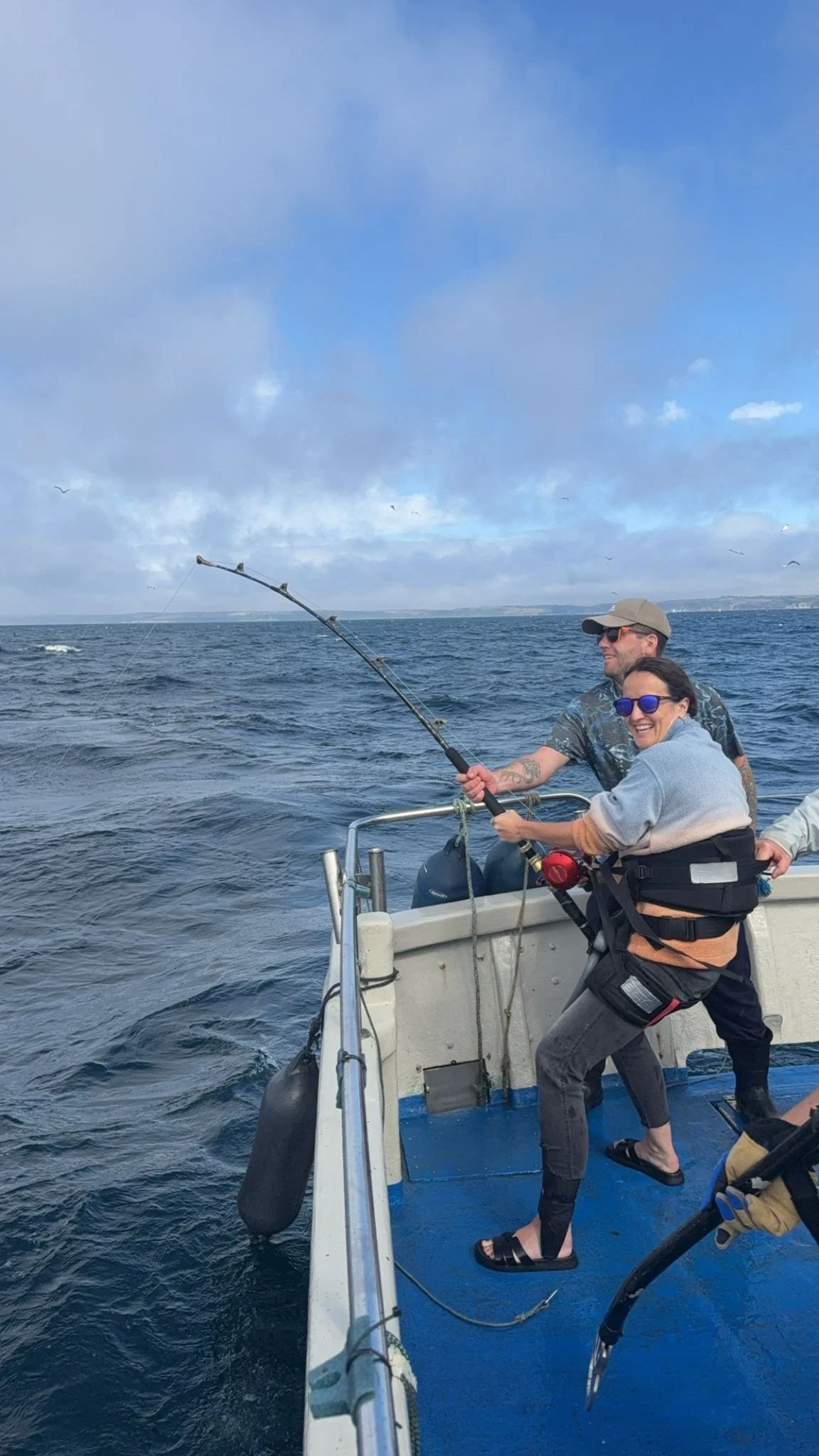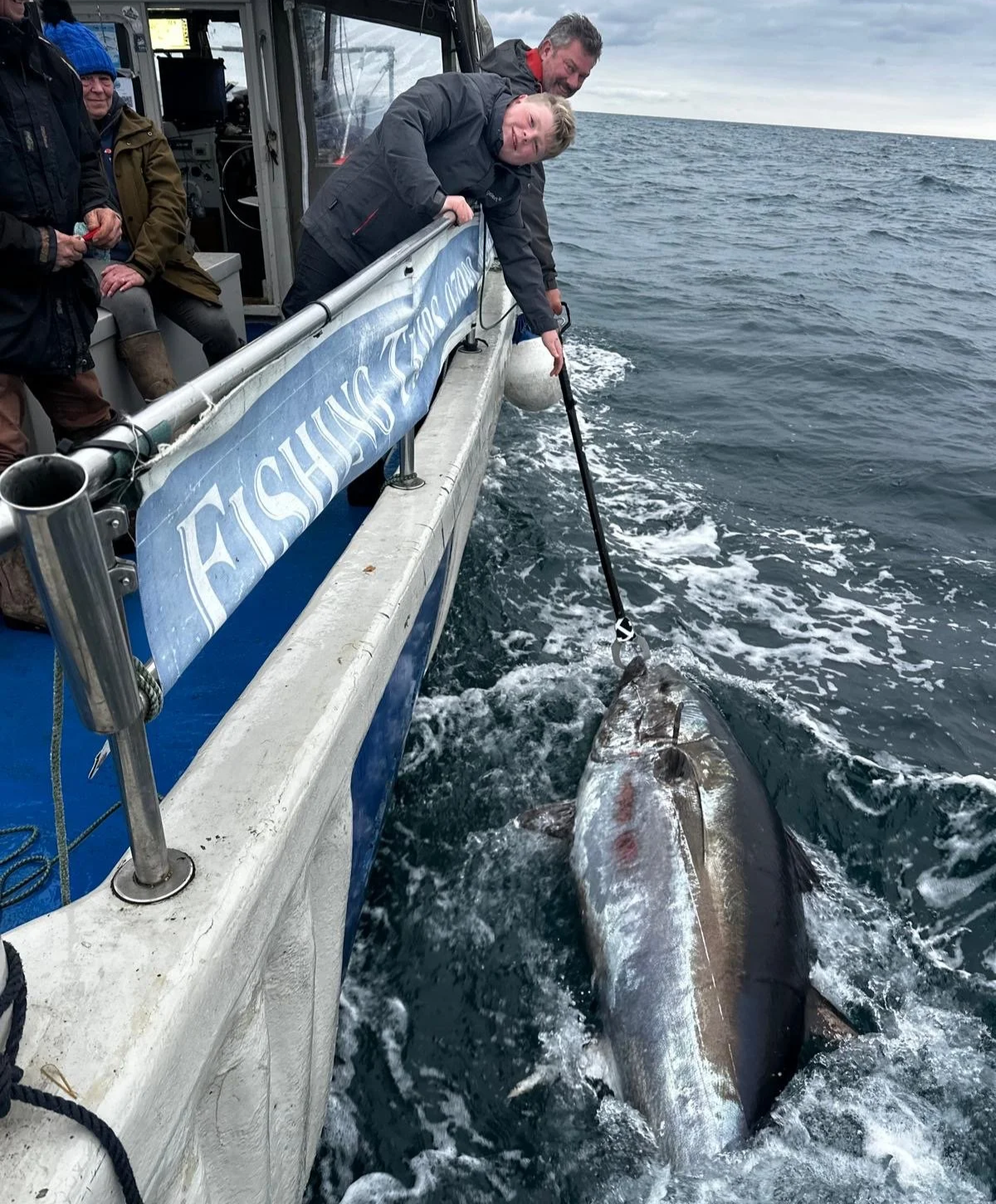 Just some of our happy customers (and happy crew!) catching their first or their fiftieth tuna.